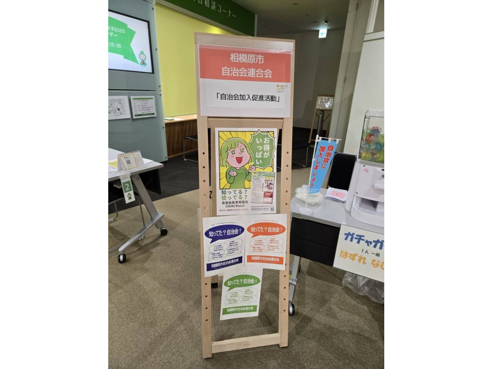 交流展示会では、令和7年10月1日(水)から自治会活動の紹介パネルや女子美術大学とコラボしたマンガ「やさしいまちのつくりかた」の冊子等を置き、