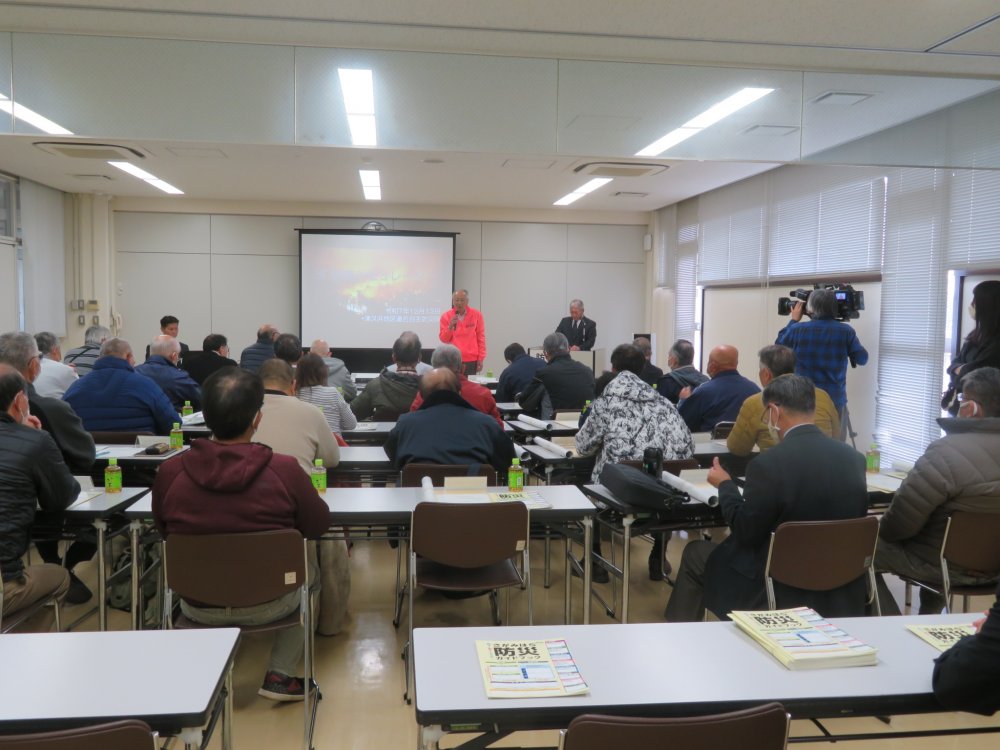 今回の研修会には33名の自治会長が参加され、参加された方からは「改めて防災の重要性を感じた」「今後の防災訓練に取り入れたい」等の感想があり、大変有意義な研修会でした。