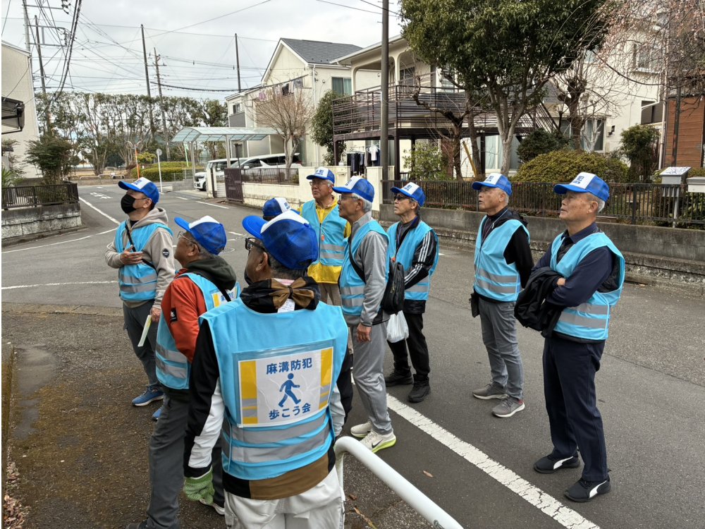 麻溝地区では、毎月、安安の防犯部会による徒歩のパトロールが実施されております。